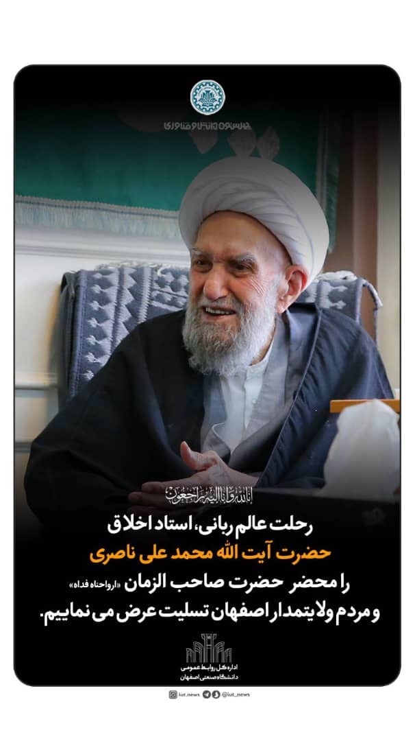 ضمن عرض تسليت به مناسبت درگذشت عالم ربانی حضرت آیتالله العظمی ناصری و اعلام سه روز عزای عمومی در شهر اصفهان و حسب دستور استانداري اصفهان مبني بر تعطيلي شهر اصفهان در روز يكشنبه 6 شهريورماه به استحضار همكاران ارجمند مي رساند: