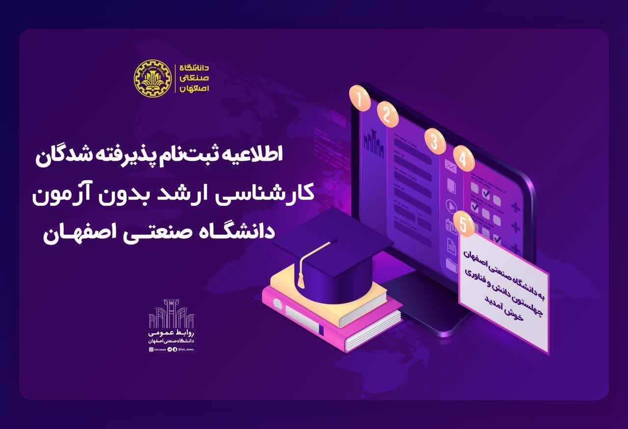 اطلاعیه پذيرفتهشدگان کارشناسی ارشد بدون آزمون سال 1403 دانشگاه صنعتي اصفهان