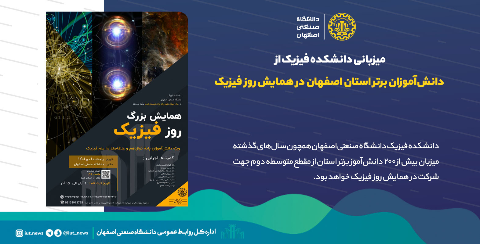دانشکده فیزیک دانشگاه صنعتی اصفهان اول دی‌ماه، همزمان با روز جهانی فیزیک در سال جهانی علوم پایه، میزبان دانش‌آموزان مستعد و برتر این حوزه خواهد بود.