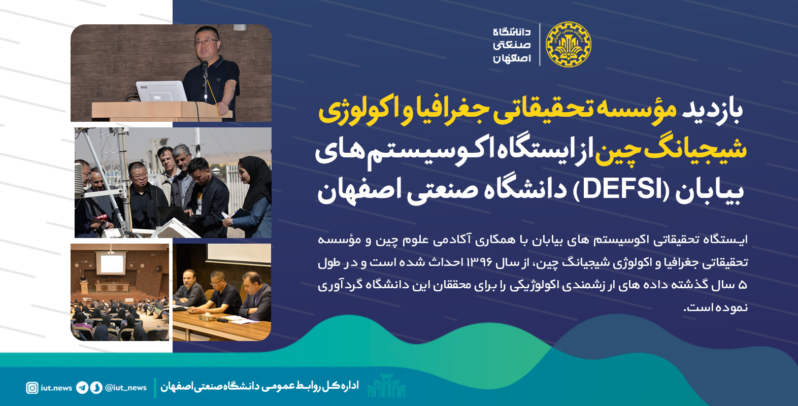 بازدید نمایندگان مؤسسه جغرافیا و اکولوژی شیجیانگ چین از ایستگاه تحقیقاتی اکوسیستم های بیابان (DEFSI) دانشگاه صنعتی اصفهان