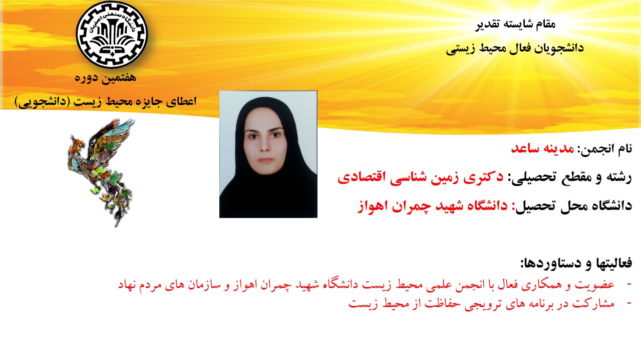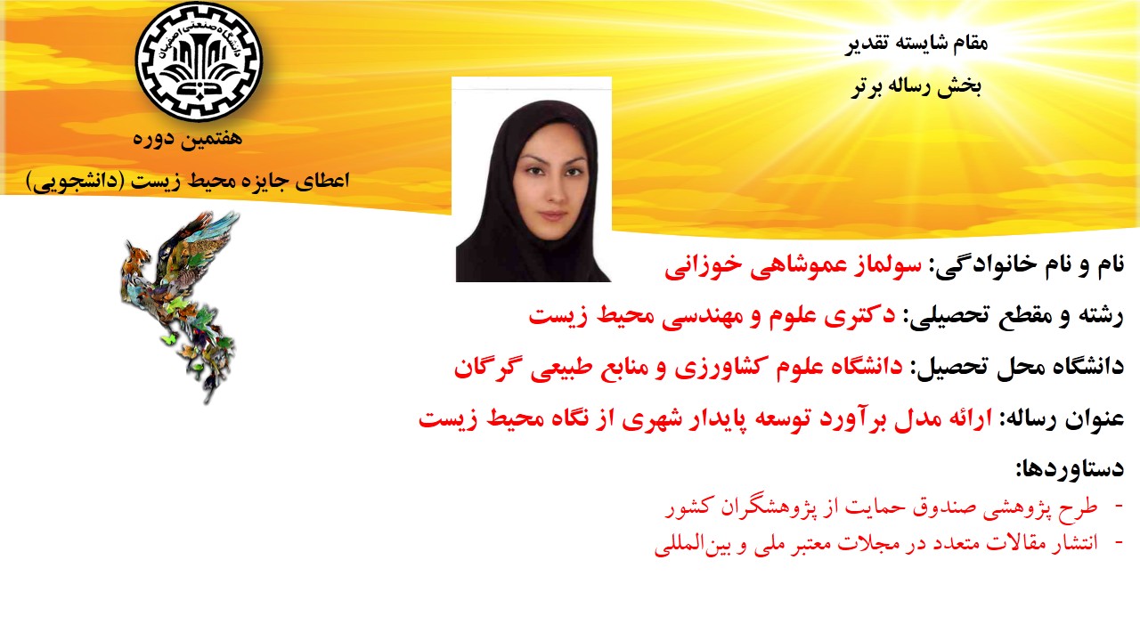 در هفتمین جایزه ملی محیط‌زیست ویژه دانشجویان دانشگاه‌های کشور: