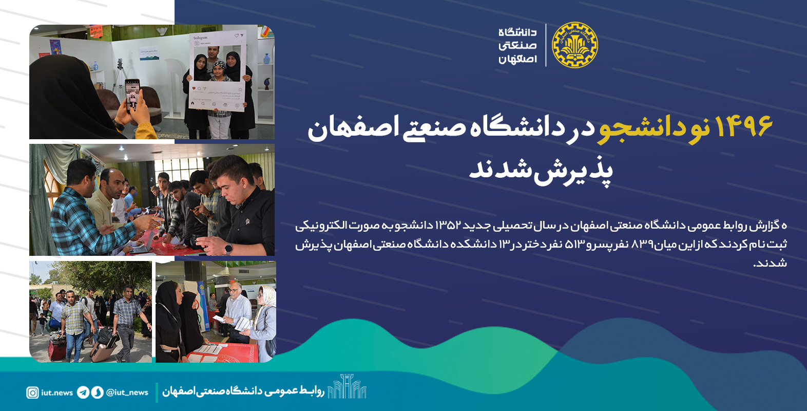 ۱۴۹۶ نو دانشجو در دانشگاه صنعتی اصفهان پذیرش شدند
