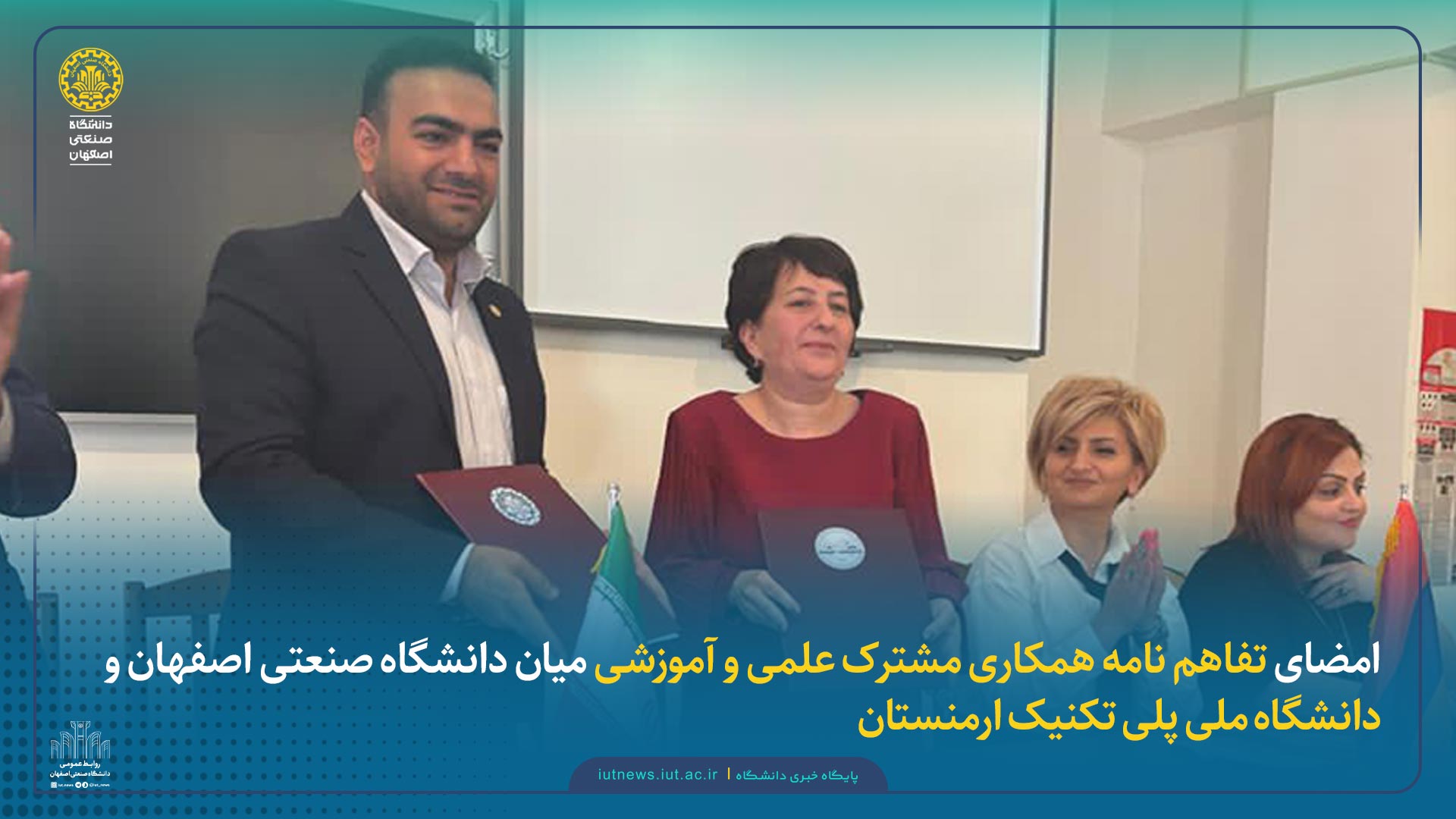 با حضور معاون دانشجویی دانشگاه صنعتی اصفهان در ارمنستان، تفاهم نامه همکاری مشترک علمی، آموزشی و پژوهشی میان این دانشگاه و دانشگاه ملی پلی تکنیک ارمنستان – واحد شهر کاپان به امضاء رسید.