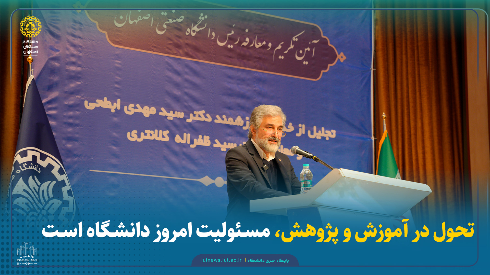 سرپرست دانشگاه صنعتی اصفهان در آیین تکریم و معارفه، با تأکید بر ضرورت تحول در نظام آموزشی، تقویت پژوهشهای بنیادی و کاربردی و افزایش نقشآفرینی دانشگاه در حل مسائل جامعه، دانشگاه صنعتی اصفهان را نهادی اثرگذار در توسعه علمی، اجتماعی و اقتصادی کشور دانست.