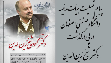 پيام تسليت هيأت رئيسه دانشگاه صنعتي اصفهان در پي درگذشت دكتر محمود شيخ زين الدين