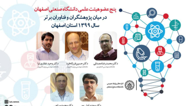 پنج عضو هیئت علمی دانشگاه صنعتی اصفهان، در میان پژوهشگران و فناوران برتر سال 1399 استان